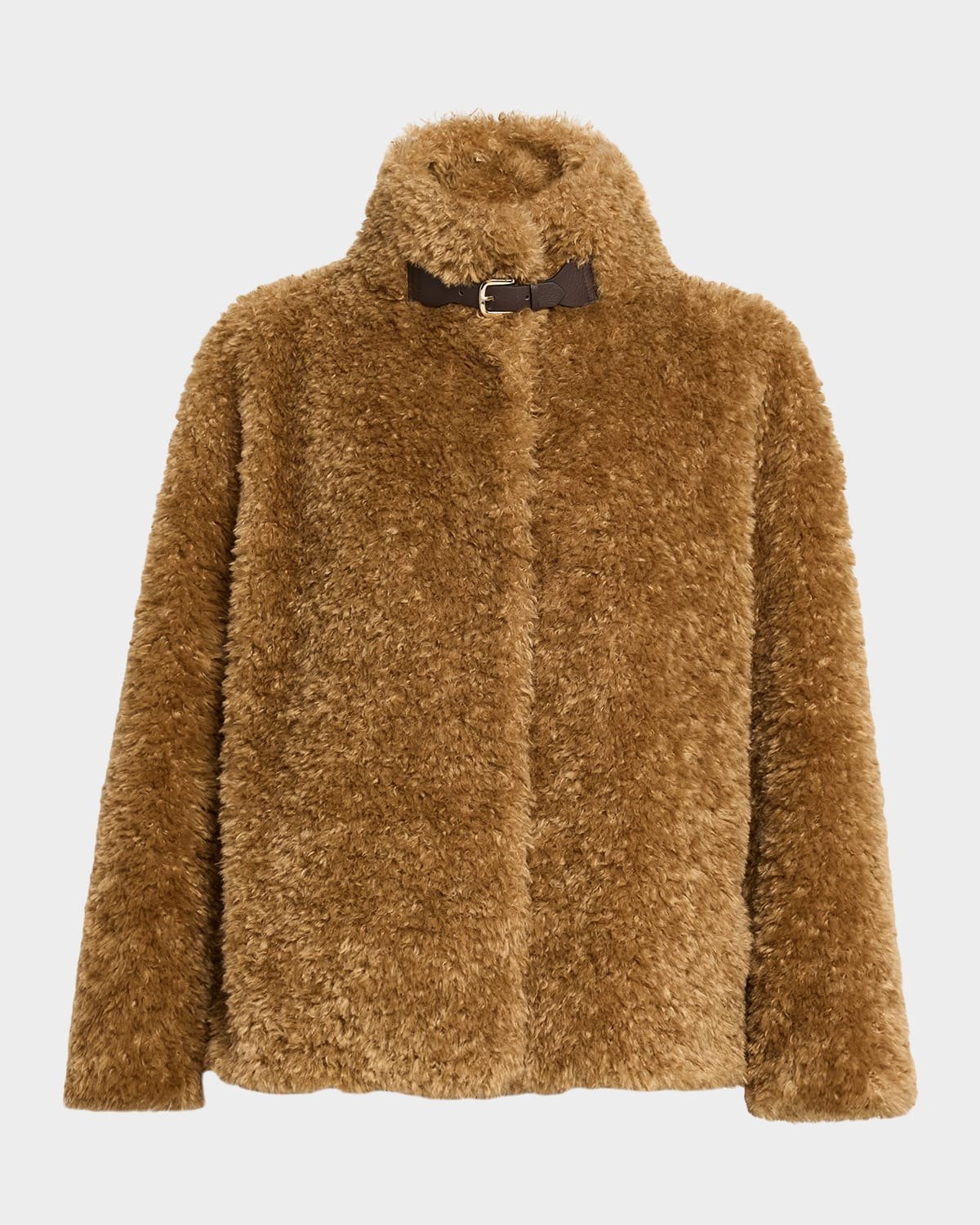Crafted from a fuzzy faux fur, this teddystyle jacket by Herno features an adjustable faux leather strap for a utilitarian finish. Stand collar Long sleeves Classic fit Hem falls to the hip Concealed snapfront Polyester Lining: Rayon/viscose Dry clean; do not iron Imported