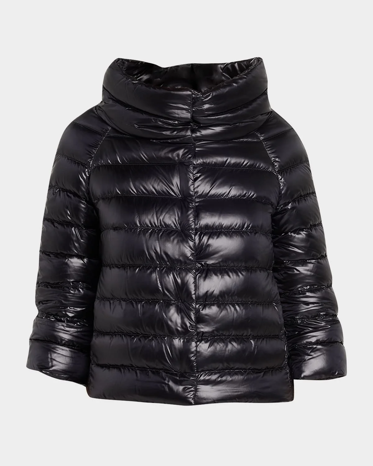 Crafted in ultra-lightweight nylon, the "Sofia" bolero & nbsp;jacket by Herno is filled with premium goose down and offers a sleek & nbsp;silhouette without compromising warmth. Water-resistant Cowl neckline & nbsp; Three-quarter sleeves & nbsp; Welt pockets & nbsp; Relaxed fit & nbsp; Hem falls to & nbsp;the hip Concealed snap-front & nbsp; Nylon/polyamide Fill: Down/feather Hand wash Imported