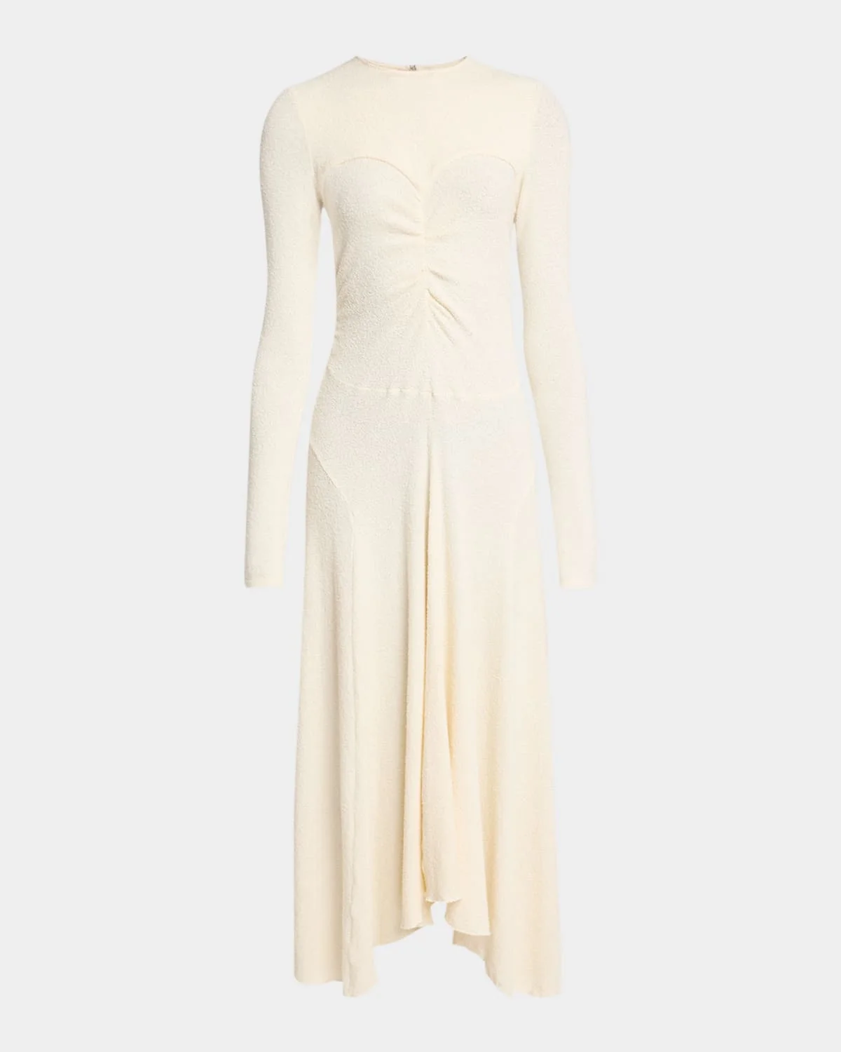 Flora Ruched Boucle Long-Sleeve Midi Dress