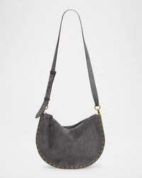 Isabel Marant "Oskan" soft suede and leather shoulder bag with studded trim Detachable top handle Detachable, adjustable shoulder strap Can be worn as a top handle or shoulder/crossbody bag Zip top closure Interior, one slip pocket Lining: Cotton Approx. 9"H x 16.5"W x 2.4"D Spot clean Imported