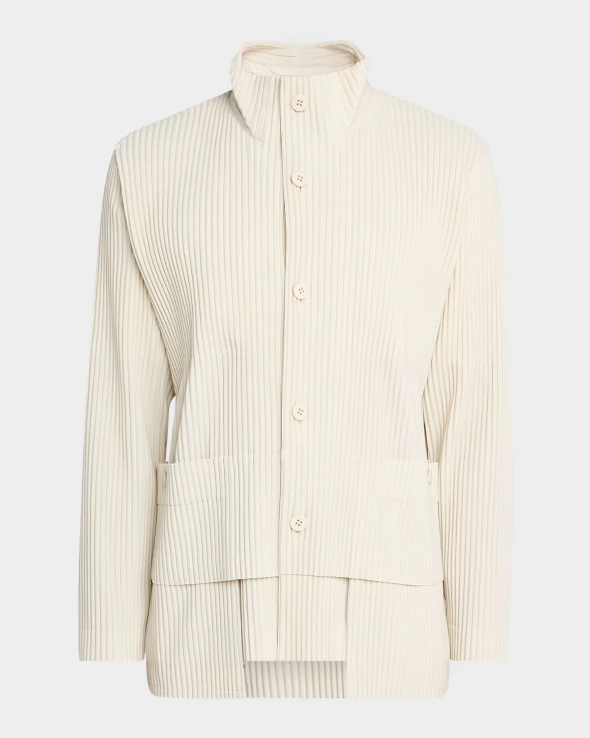 Homme Plisse Issey Miyake solid buttondown shirt defined by expert pleating Stand collar Button front Multipockets Long sleeves Polyester Machine wash cold, line dry Imported