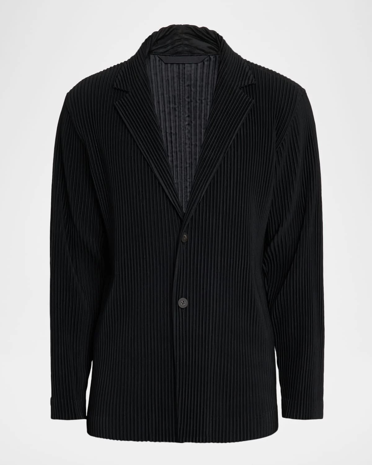 Lightweight with an allover pleating, the BAO BAO ISSEY MIYAKE "Basics" blazer is unique with a textured finish and notable polyester that dries quickly. Notched collar Long sleeves; button cuffs Front button closure Side slip pockets One interior pocket Polyester Lining: Polyester Machine wash Imported