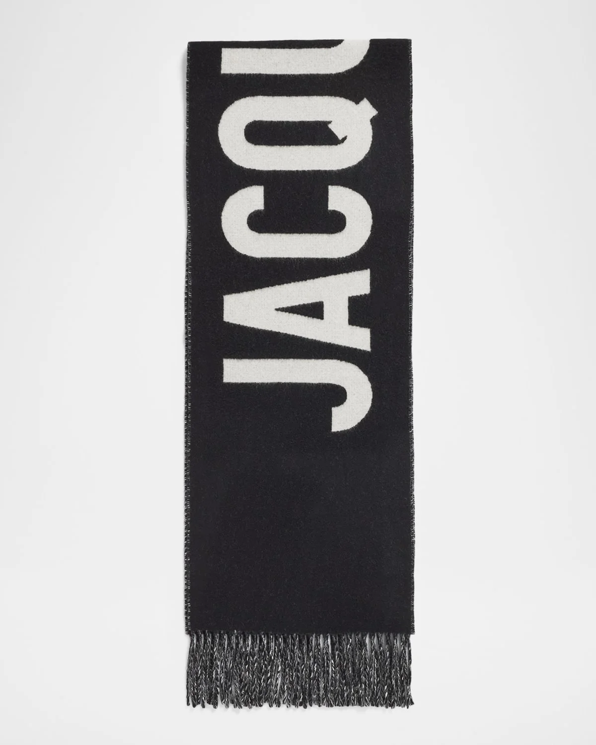 Jacquemus wool fringe scarf featuring a bold jacquard logo. Approx. 14"W x 71"L Fringing at ends May be styled multiple ways Virgin wool Made in Italy