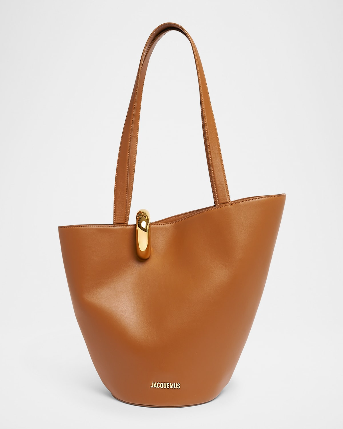 - Jacquemus "Le Bambola Moyen" shoulder bag in leather - Shoulder straps - Open top with ring magnetic clasp closure - Interior, one zip pocket - Lining: Cotton - Approx. 13.8"H x 16.9"W x 7.5"D - Made in Italy