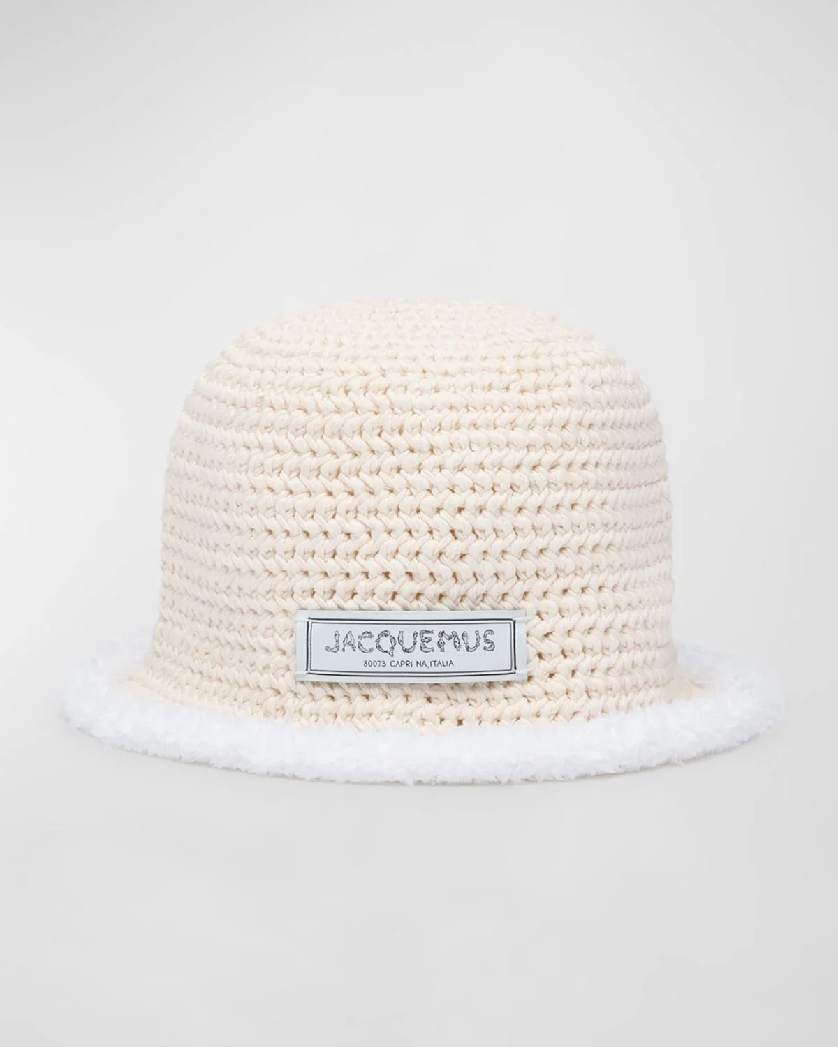 - Jacquemus "Le Bob Bordino" bucket hat in cotton - Flat crown - Logo accent - Downturned brim - Sherpa trim - Made in Italy