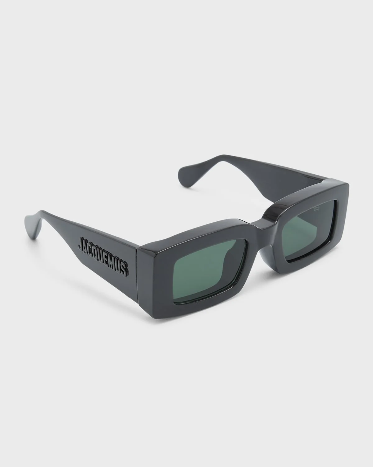 Jacquemus "Les Lunettes Tupi" rectangle sunglasses in lightweight, flexible Grilamid® nylon Saddle nose bridge Logo on temples Wide, tapered arms 100% UVA/UVB protection Imported