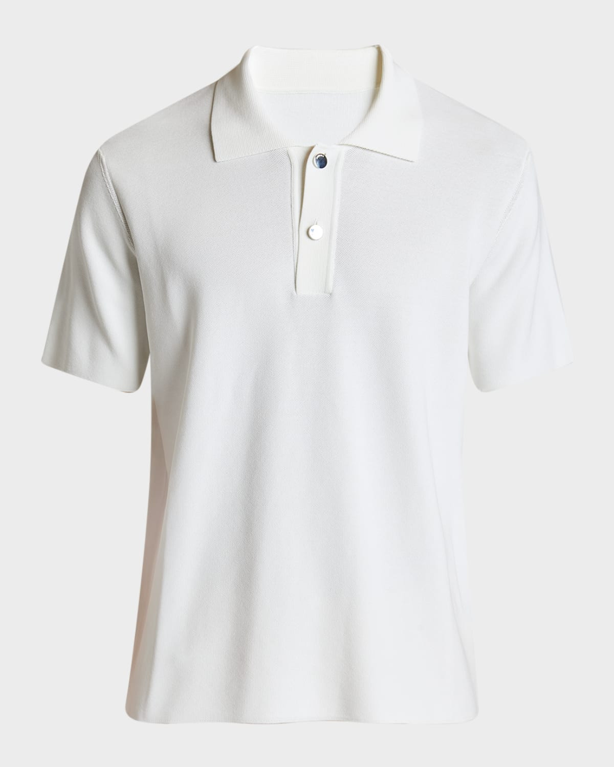 - Jacquemus pique polo shirt featuring a knit logo on back - Silver metal buttons with engraved logo - Short sleeves - Relaxed fit - Viscose/nylon/polyamide - Made in Portugal - Model is 6'1"/185cm.