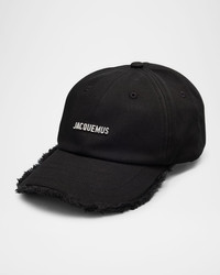 Jacquemus "The Artichaut" canvas baseball hat with fringe trim Features silvertone metal logo Crown with button top Sixpanel construction Adjustable back buckle strap Adjustable chin drawcord Cotton Imported