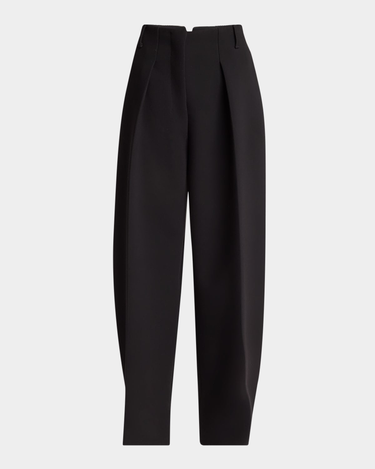 - Jacquemus curved-leg pants - High rise - Four-pocket style - Pleated front - Loose fit - Full length - Hook/zip fly; belt loops - Polyester - Lining: Cotton/polyester - Imported