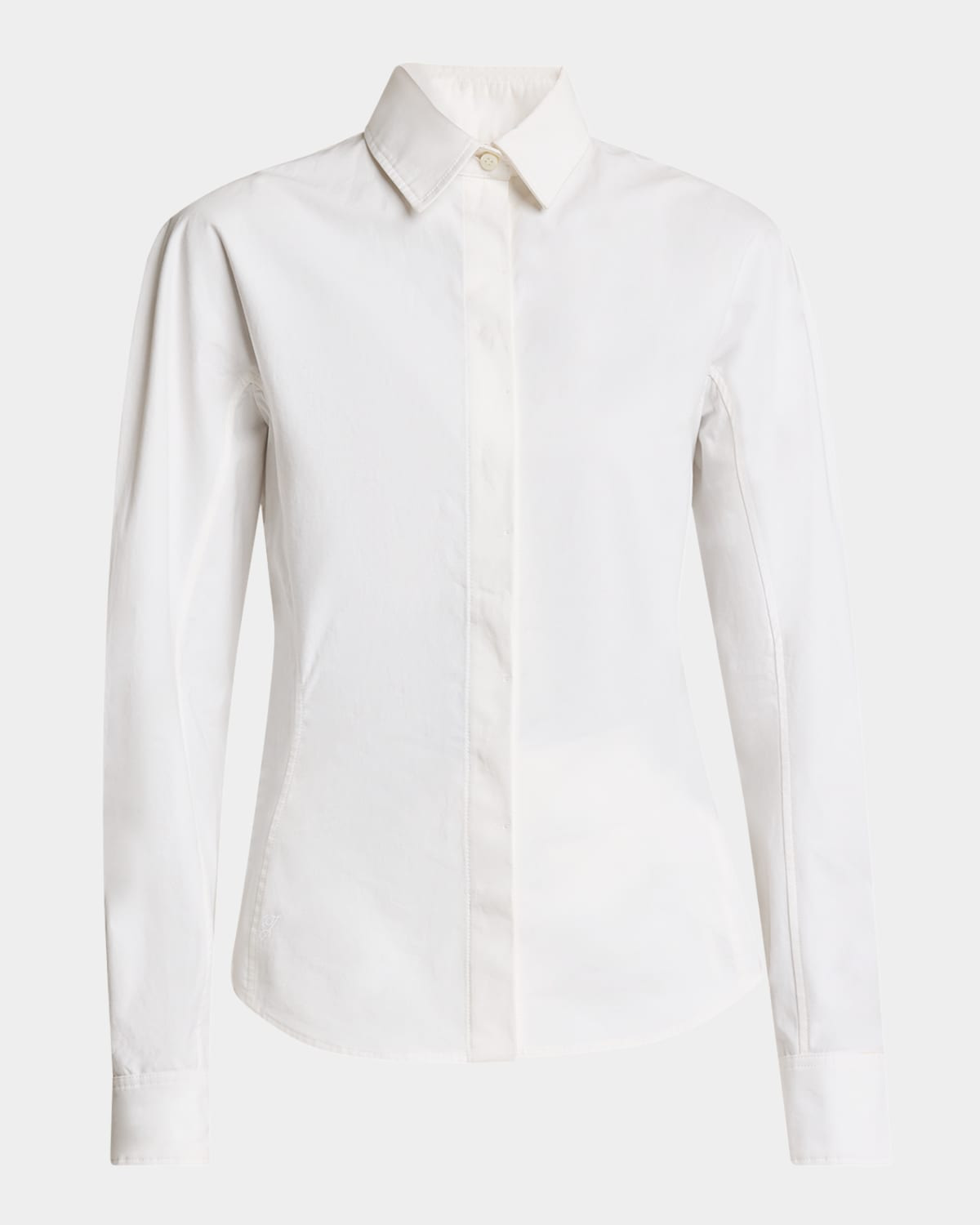 - Jacquemus crisp cotton shirt - Point collar - Long curved sleeves with button cuffs - Slim fit - Hem sits at the hip - Concealed button-front - Cotton - Imported