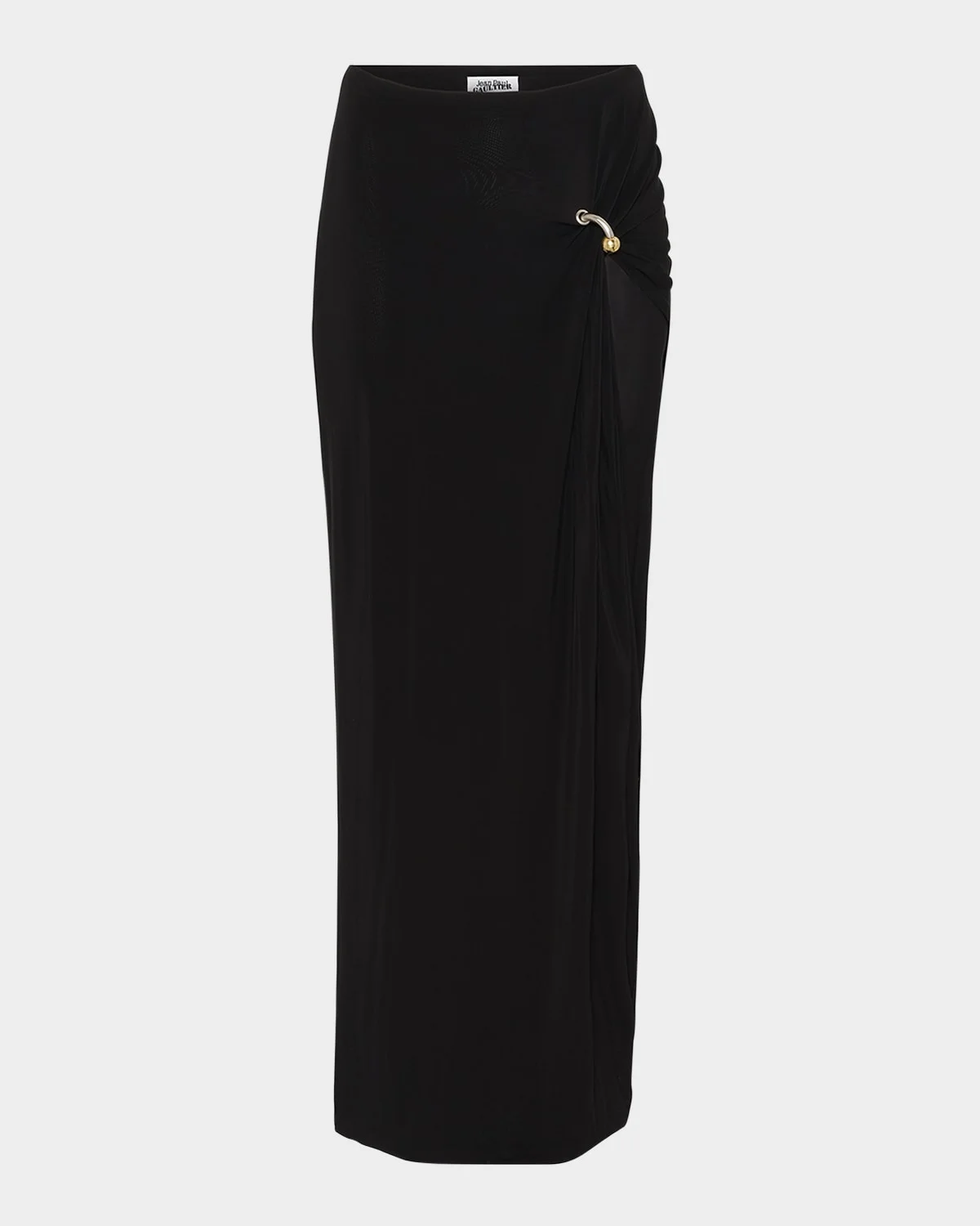 - Jean Paul Gaultier draped stretch viscose skirt embellished with a signature two-tone piercing detail - High waist - Skirt falls straight from hip to hem - Full length - Hidden closure - Viscose/elastane - Made in Portugal