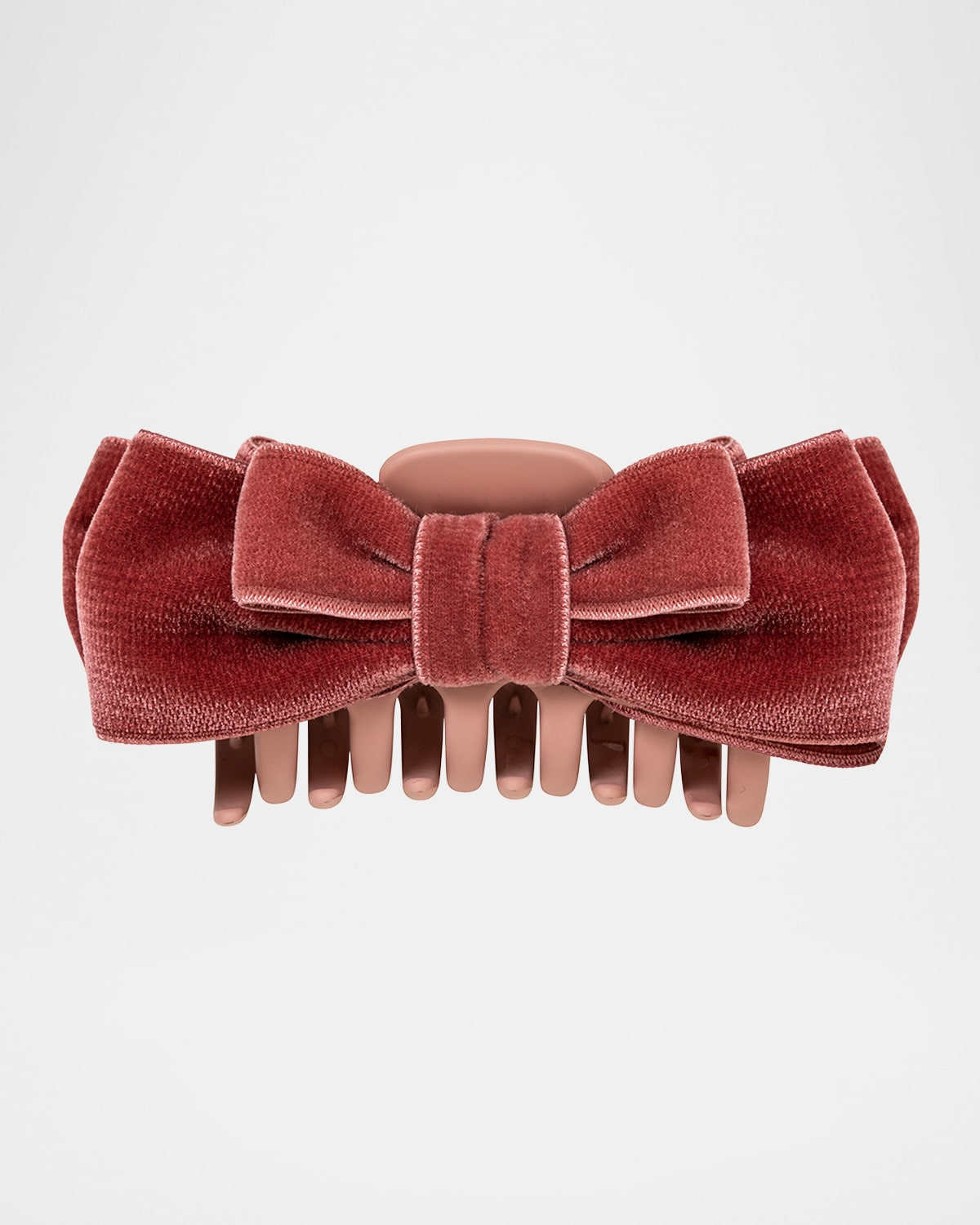 - Jennifer Behr "Matilda" jaw clip in polyester and BPA-free plastic - Features double velvet bows - Approx. 5"L - Sold individually - Made in USA