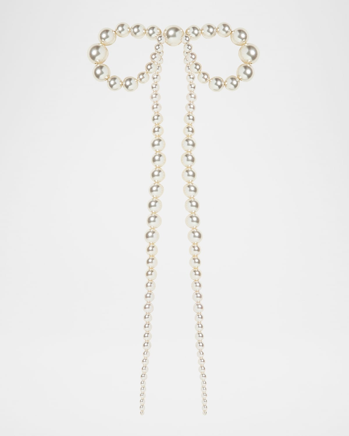 - Jennifer Behr "Presley" bow barrette with glass beads - Grosgrain interior - Approx. 9"L x 5"W - Made in USA