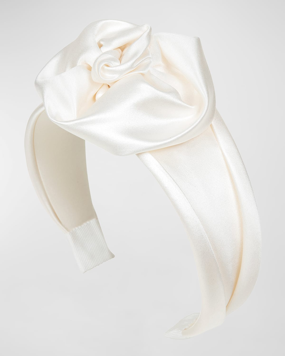 - Jennifer Behr "Rosalina" wide headband in silk and plastic - Rosette accent - One size fits most - Made in USA