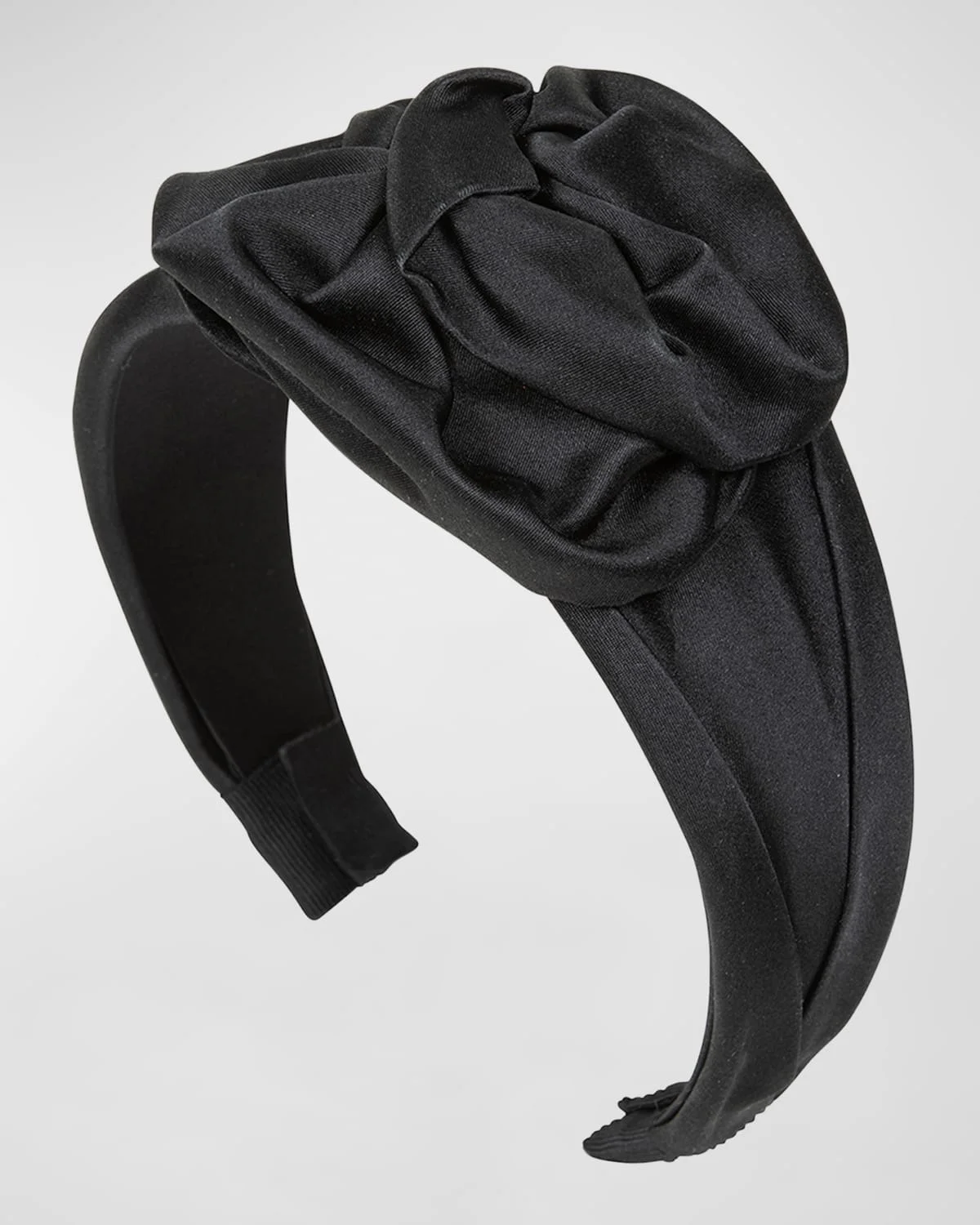 - Jennifer Behr "Rosalina" wide headband in silk and plastic - Rosette accent - One size fits most - Made in USA