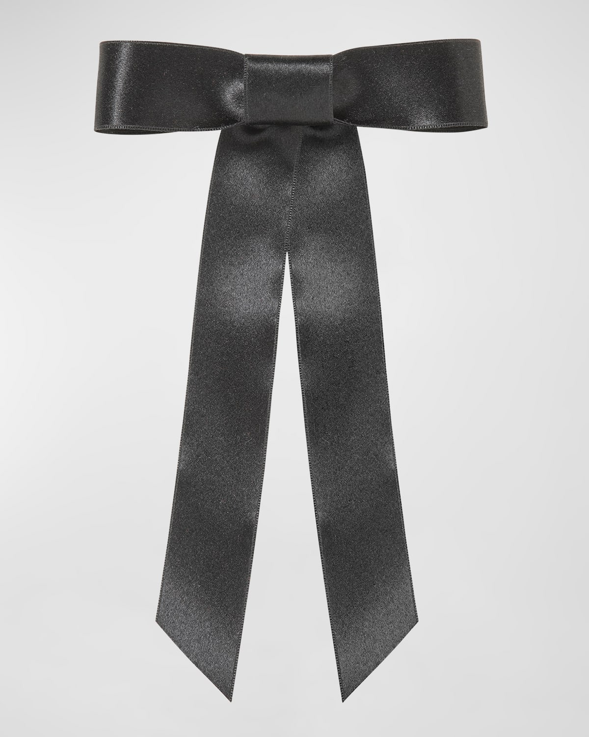 - Jennifer Behr "Sasha" bow barrette in silk and rhodium tone-plated steel - Pinch clasp closure - Made in USA