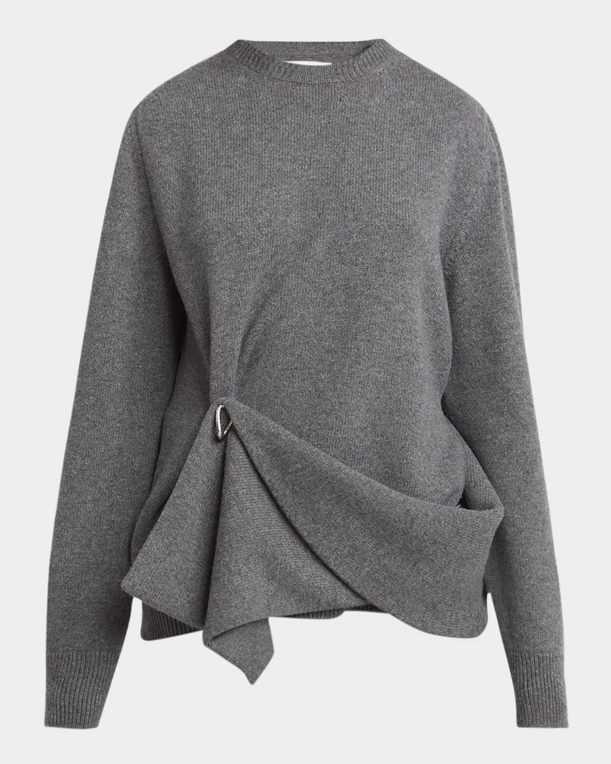Draped Panel Wool-Cashmere Crewneck Sweater