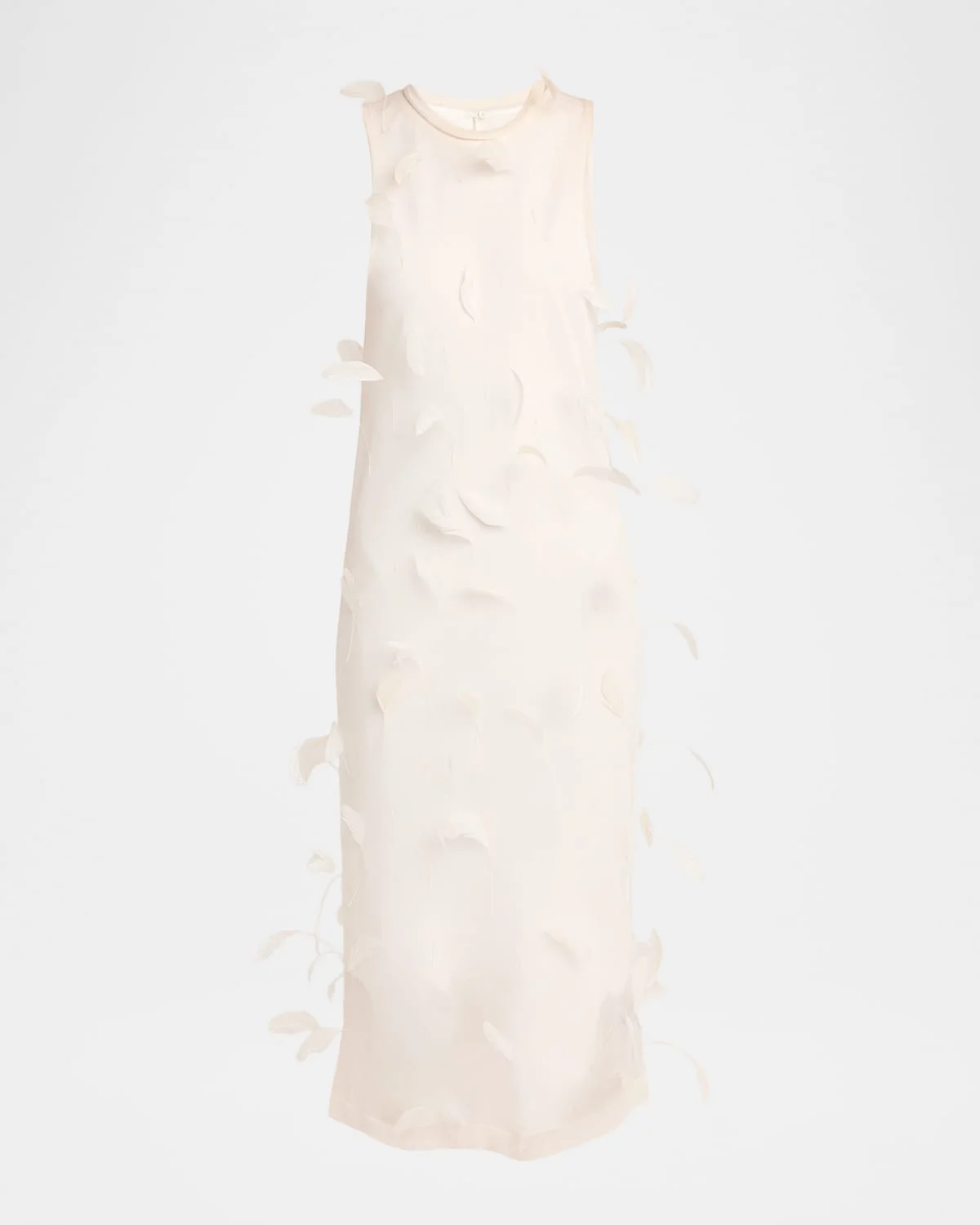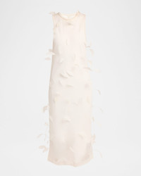 Feather-Trim Sheer Silk Sleeveless Midi Dress