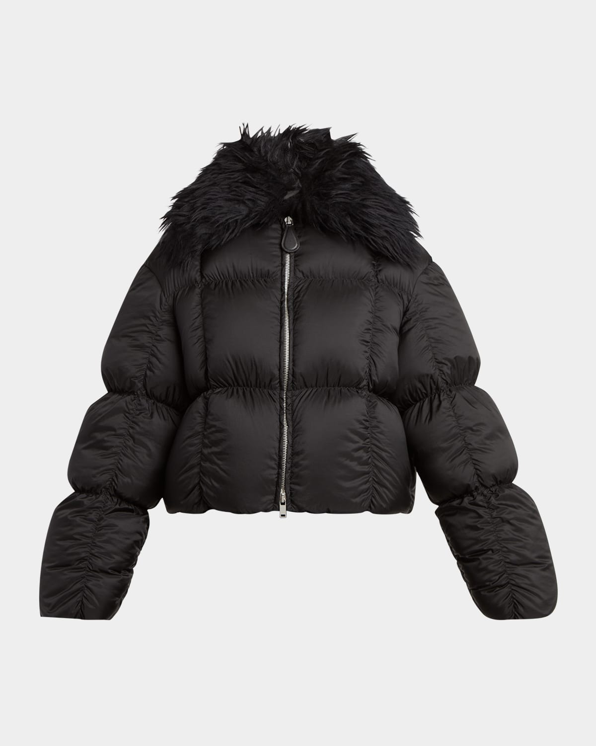 Gathered Quilted Jacket With Detachable Faux-Fur Collar