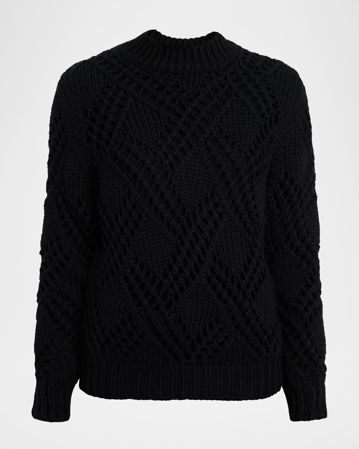 Lace Knit Long-Sleeve Crewneck Sweater