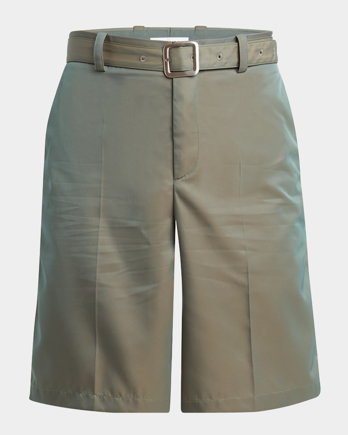 - Jil Sander shorts in nylon with a glaze effect for a dimensional finish - Regular rise - Flat front - Side slip pockets - Back flap pockets - Relaxed legs - Button-zip fly; belt loops - Self belt - Nylon - Lining: Cotton - Dry clean - Made in Italy