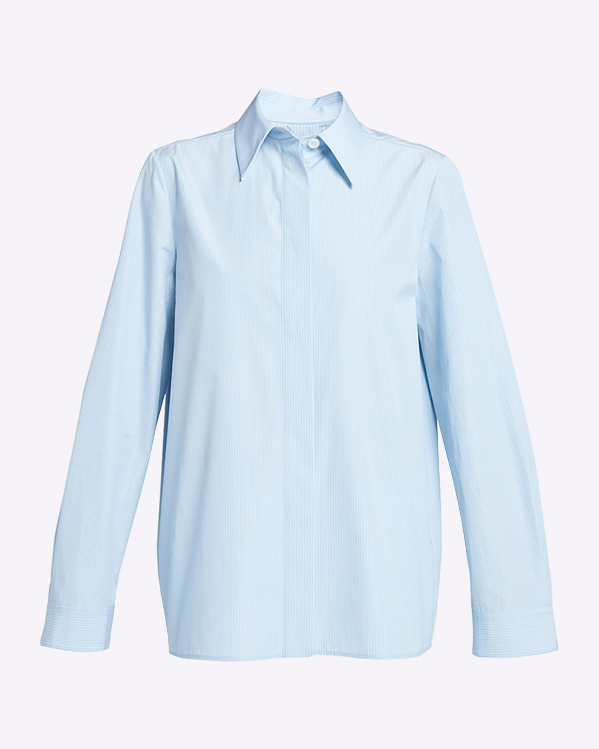 Jil Sander "Monday" stripe shirt with embroidered js monogram Spread collar; concealed button placket Long sleeves; button cuffs Relaxed fit Cotton Made in Italy