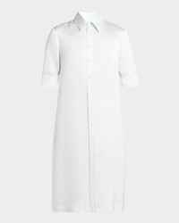 Short-Sleeve Long Fitted Button-Down Shirt