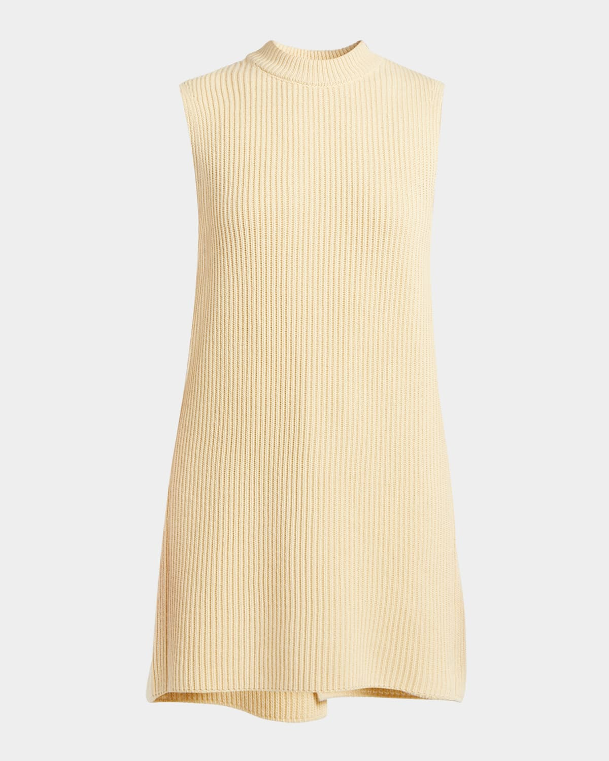 Sleeveless Wrap-Back Fine Wool Rib Vest