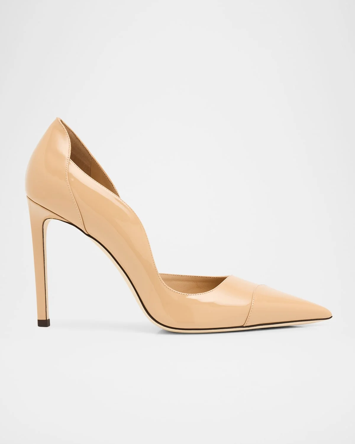 Jimmy Choo's "Brigitte" d'Orsay pumps are crafted from paneled patent goatskin leather 4.00 in / 100 mm covered stiletto heel Pointed toe Slipon style Leather lining and outsole Made in Italy