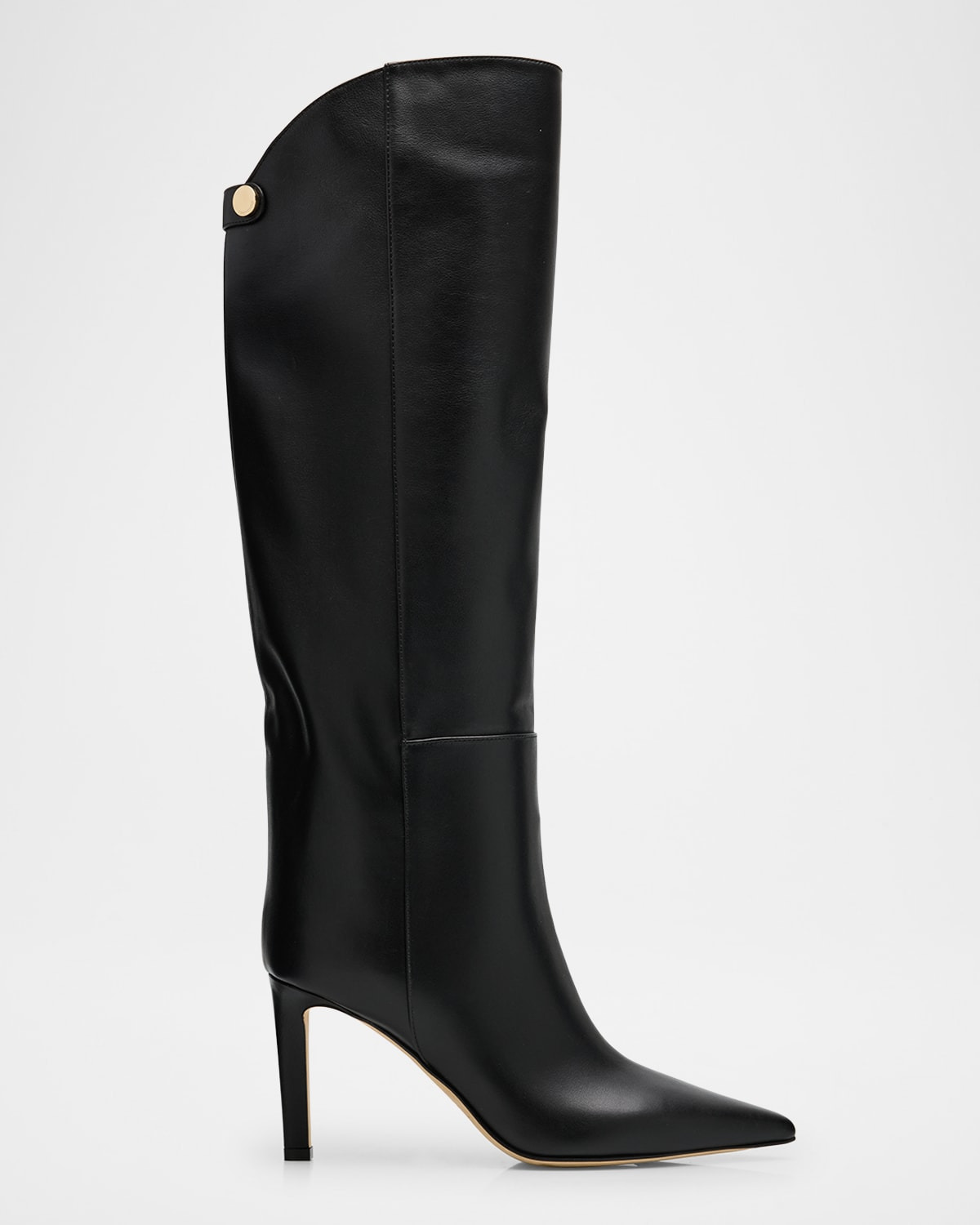 - Jimmy Choo "Alizze" knee-high boots in smooth goatskin leather - 3.25 in / 85 mm stiletto heel - Pointed toe - Pull-on style - Made in Italy