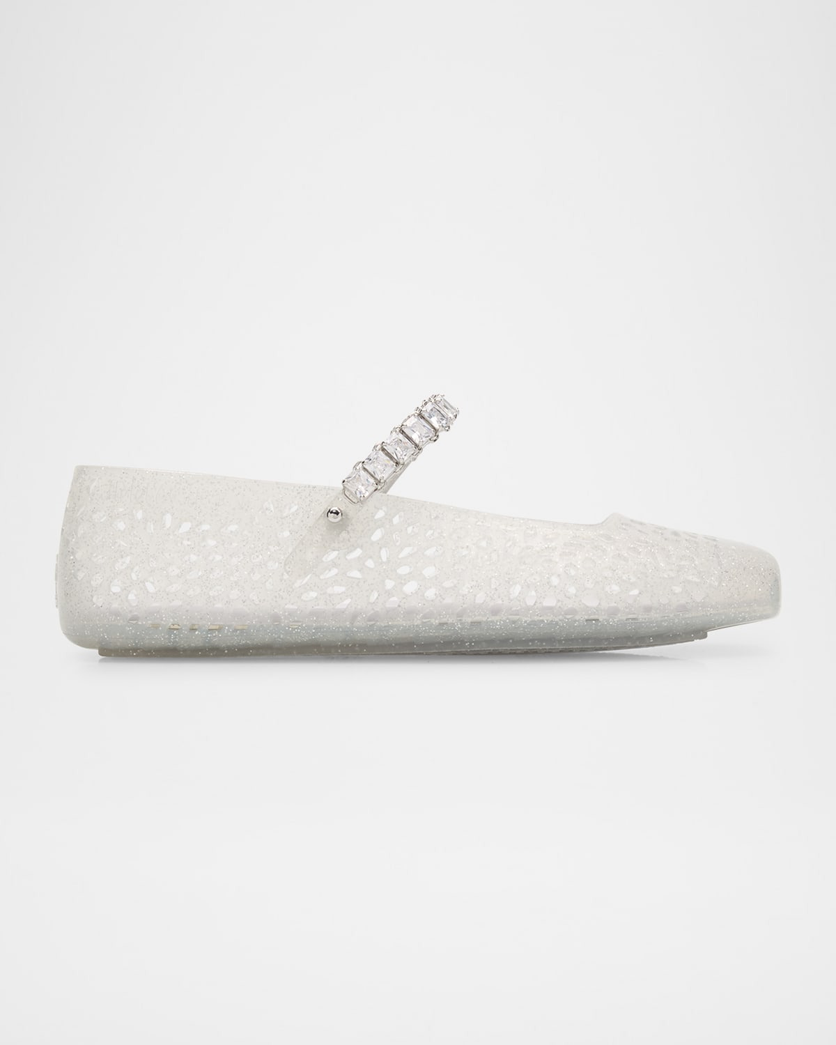 The Jelly Glitter Crystal-Strap Ballerina Flats