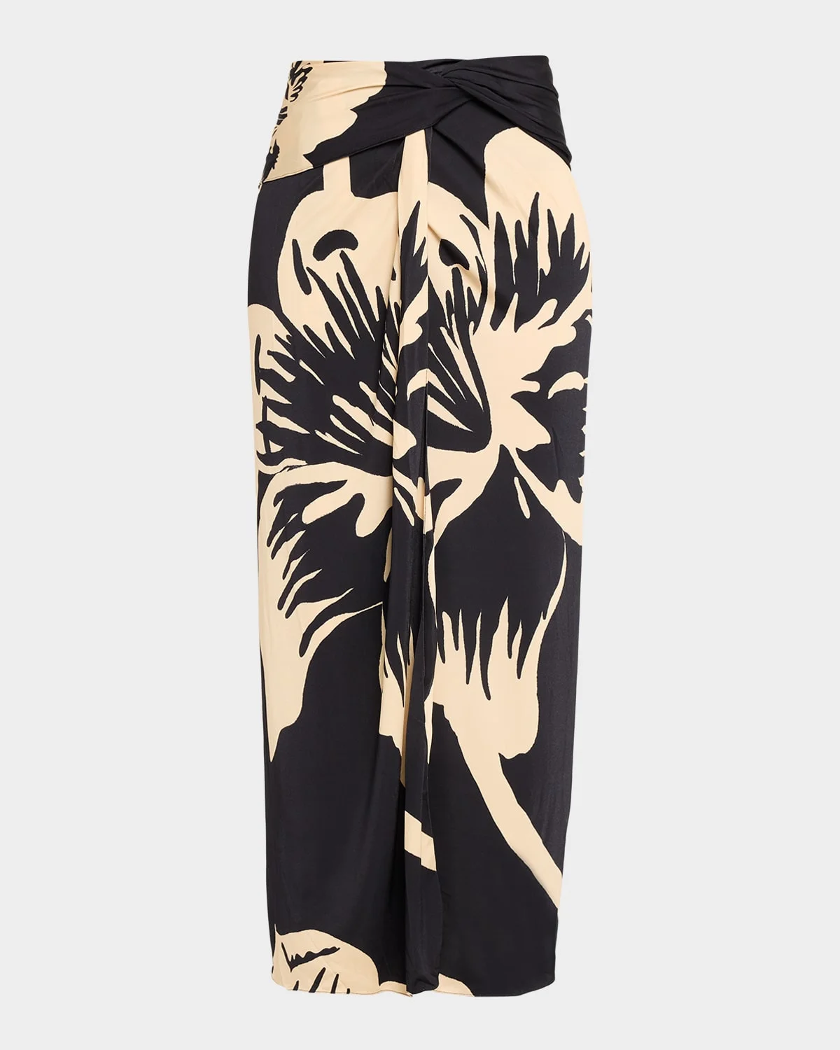 Crafted from stretch fabric, the "Luminosity" wrap skirt by Johanna Oritz features an oversized hibiscus print and dramatic draping throughout & nbsp; Draped elasticized waistband Thigh-high front slit & nbsp; Full length Slip-on style Viscose/elastane Made in Colombia