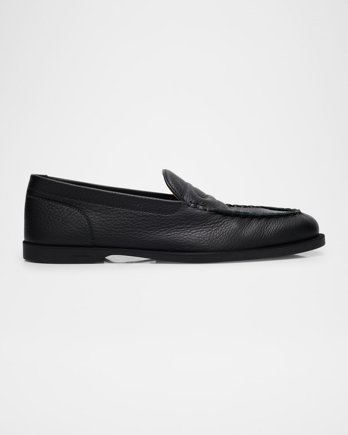 - John Lobb "Pace" penny loafers in suede featuring a glove construction - 0.17 in / 5 mm stacked heel - Round apron toe - Penny keeper strap - Leather lining - Flexible rubber outsole - Slip-on style - Made in United Kingdom