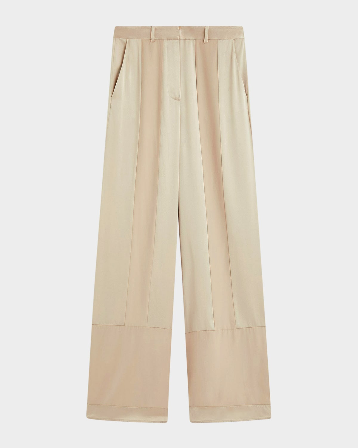 - Joseph "Corto" pants paneled in shiny and matte silk satin - Mid-rise sits high on the hips - Flat front - Side slant pockets - Full length - Wide legs - Hook-and-bar/zip fly; belt loops - Silk - Machine wash cold - Imported