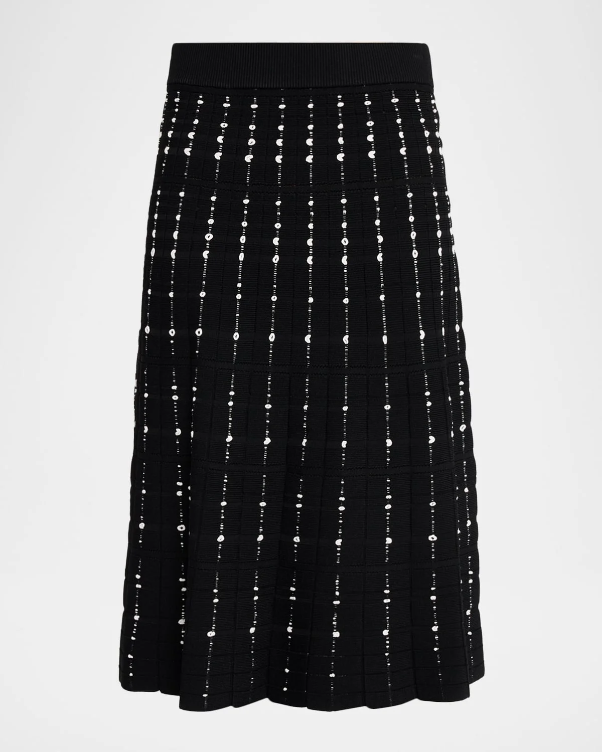 This Joseph skirt is knit in a viscose blend, detailed with fragmented stripes and a dimensional plaid texture Sits high on the hips Ribbed waistband Hem hits around the knee Aline silhouette Pullon style Viscose/elastane Dry clean Made in the USA