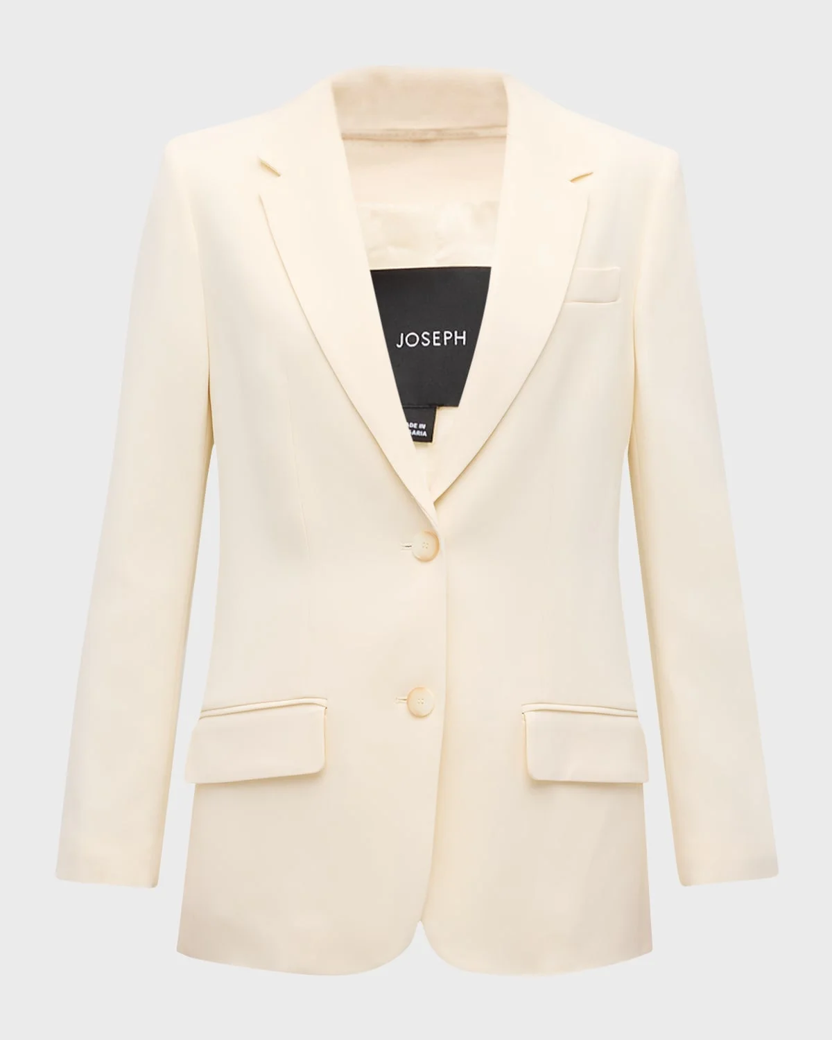Joseph "Jackie" jacket in cady fabric Notched collar; singlebreasted front Long sleeves; fourbutton cuffs Inside and outside chest pocket Front flap pockets Center back vent Relaxed fit Viscose/acetate/elastane Dry clean Made in Bulgaria
