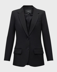 Joseph "Jackie" stretch wool blazer Notched collar; singlebreasted front Long sleeves; button cuffs Chest welt pocket Front flap pockets Rounded front hem Center back slit Tailored fit Wool/elastane Dry clean Made in Lithuania Size Note: Height: 5'11"/ waist 24"/ hips 35"/ bust 30" Model is wearing size 34