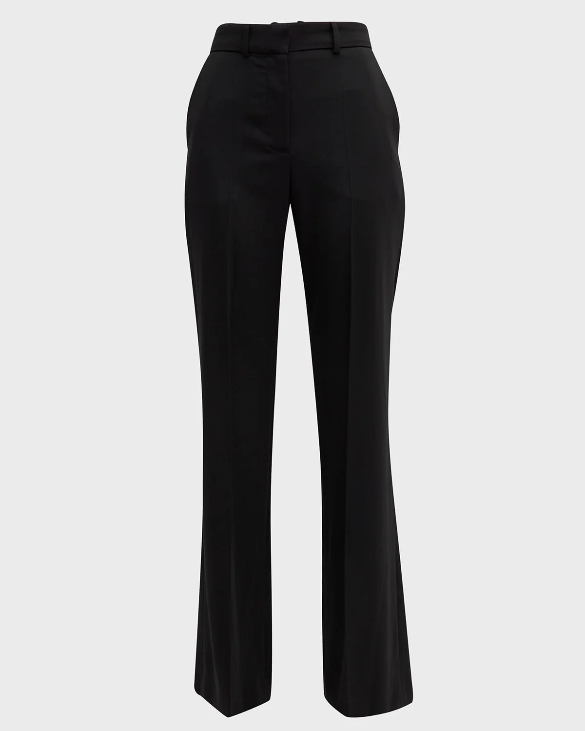 Joseph "Morissey" pants in stretch wool High rise waist Flat front Onseam pockets Back welt pockets Full length Bootcut legs Hookandbar/zip fly; belt loops Wool/elastane Dry clean Made in Lithuania