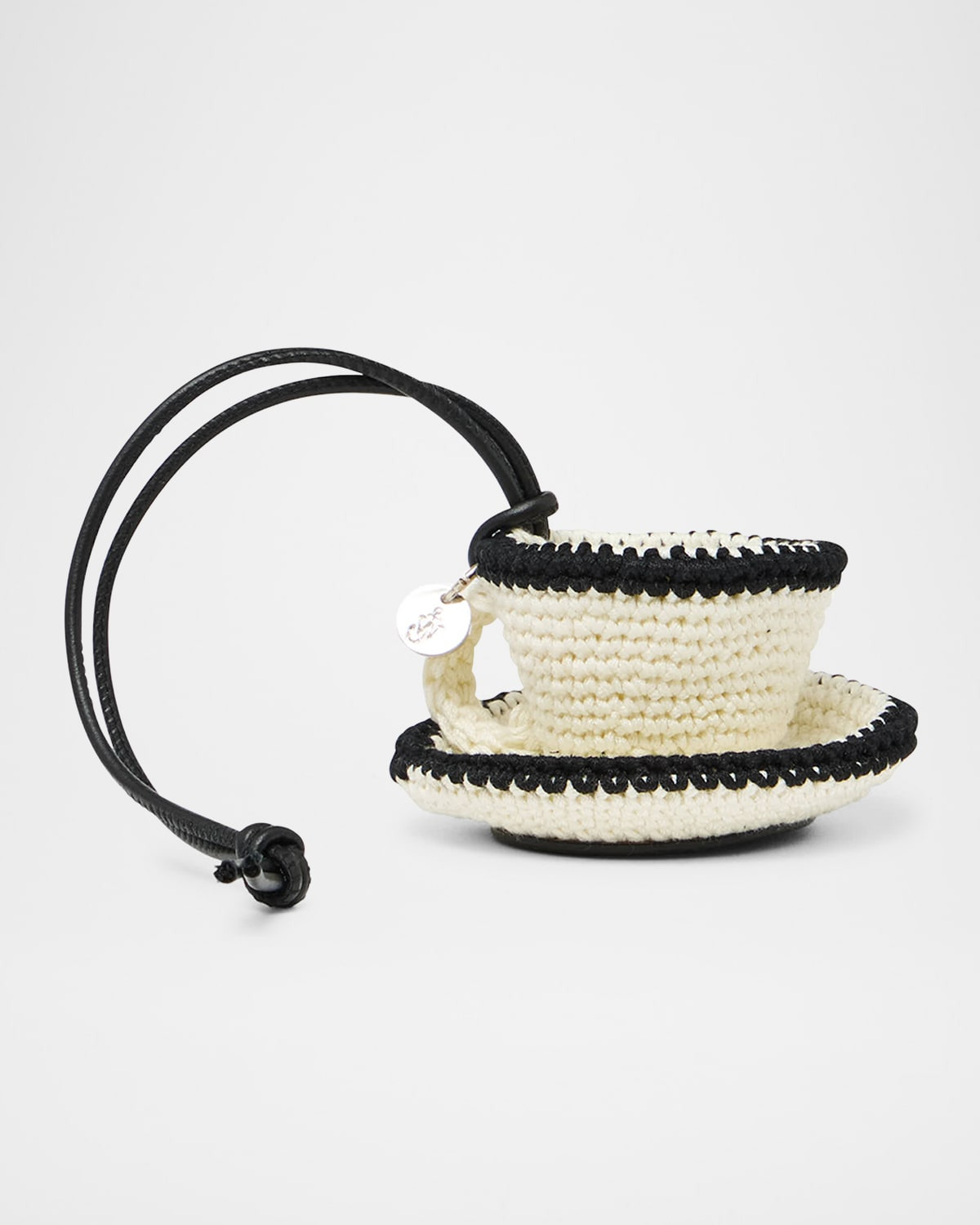 - JW Anderson teacup-shaped bag charm crocheted in cotton - Rolled leather straps - Approx. 1.6"H x 3.3"W - Item Weight (Lbs.): 0.1 - Made in Germany