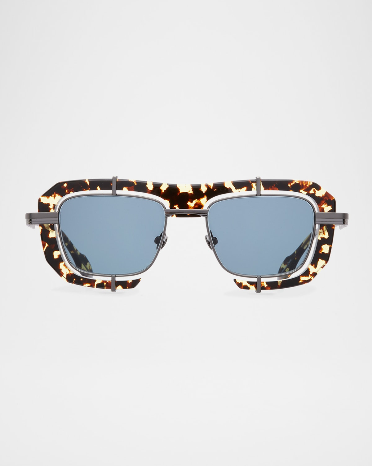 - JW Anderson "Geometric" aviator sunglasses in stainless steel and acetate - Eye/bridge/temple (in mm): 110-60-200 - Solid lenses - Adjustable nose pads - Thin, tapered arms - Logo detail at the temples - Comes with a case and cloth - Stainless steel/acetate - 100% UVA/UVB protection - Imported - Proposition 65 warning for California residents