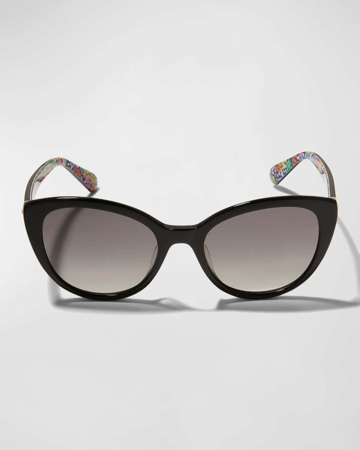kate spade new york "amberlees" cat-eye sunglasses in acetate & nbsp; Lens/bridge/temple (in mm): 55-20-140 Polarized, gradient lenses Spade logo on temples Thin, tapered arms & nbsp; 100% UVA/UVB protection Imported Proposition 65 warning for California residents