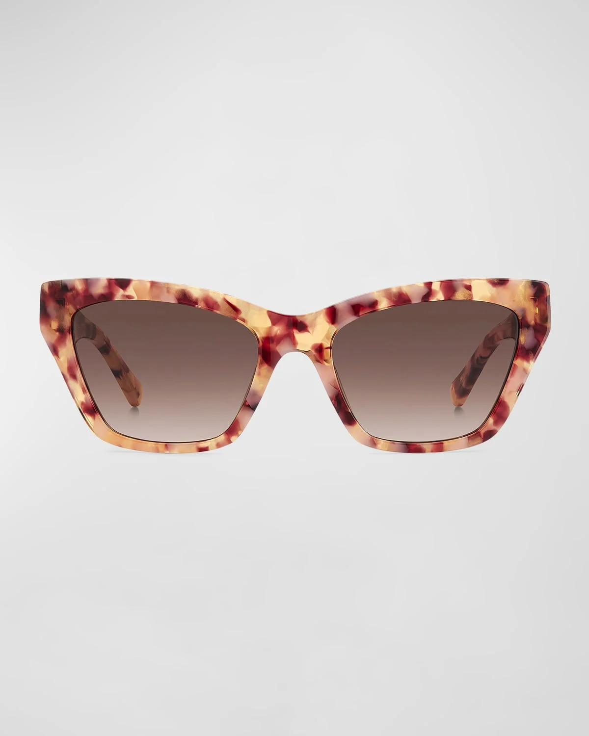 kate spade new york "fay" cat-eye sunglasses in acetate & nbsp; Lens/bridge/temple (in mm): 54-19-140 Gradient lenses Saddle nose bridge & nbsp; Signature spade on temples & nbsp; Thin, tapered arms & nbsp; 100% UVA/UVB protection Imported Proposition 65 warning for California residents