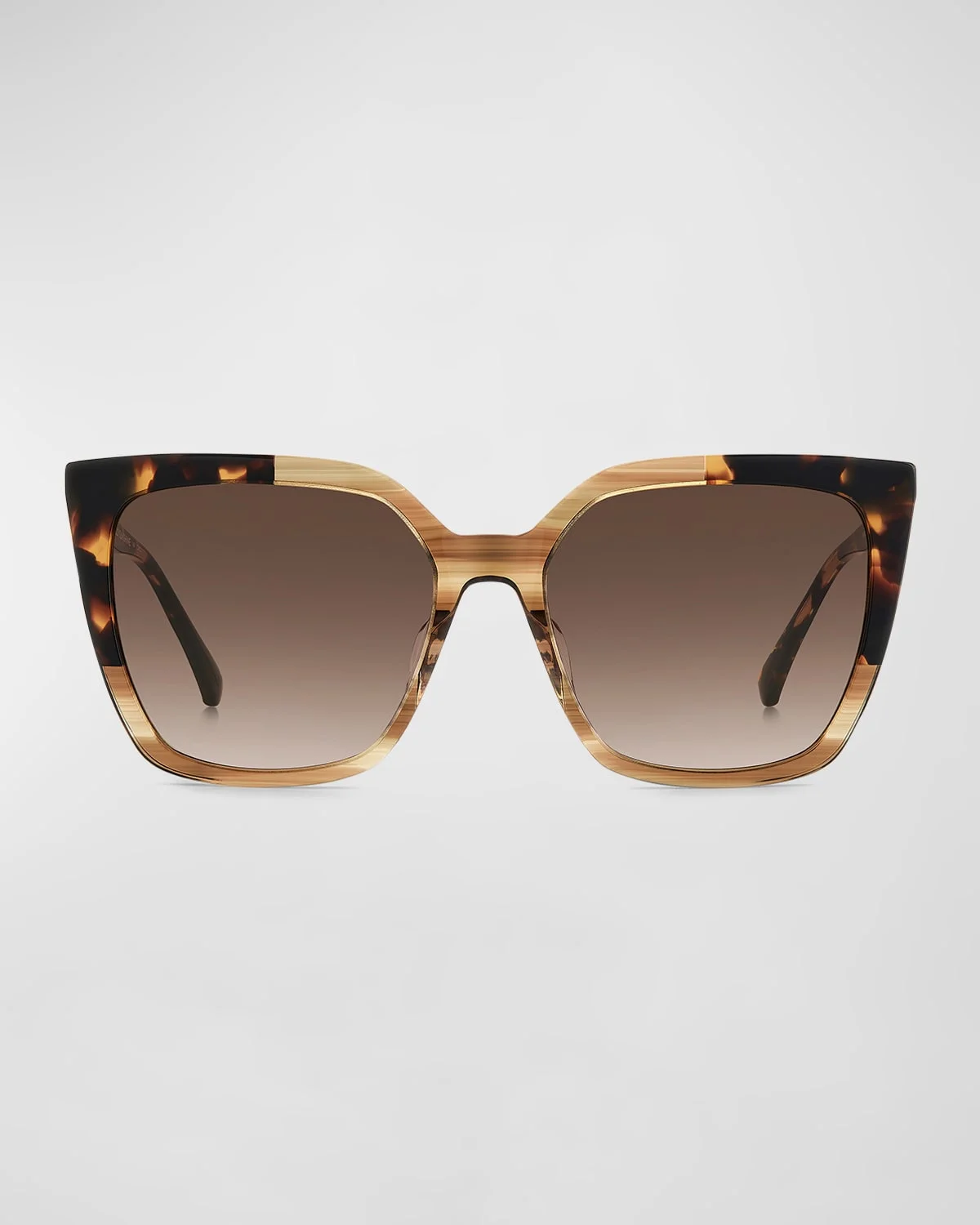 kate spade new york "marlowe" square & nbsp;sunglasses in acetate & nbsp; Lens/bridge/temple (in mm): 55-17-140 Gradient lenses Saddle nose bridge & nbsp; Logo on temples & nbsp; Thin, tapered arms & nbsp; Signature spade on earpieces & nbsp; 100% UVA/UVB protection Imported Proposition 65 warning for California residents