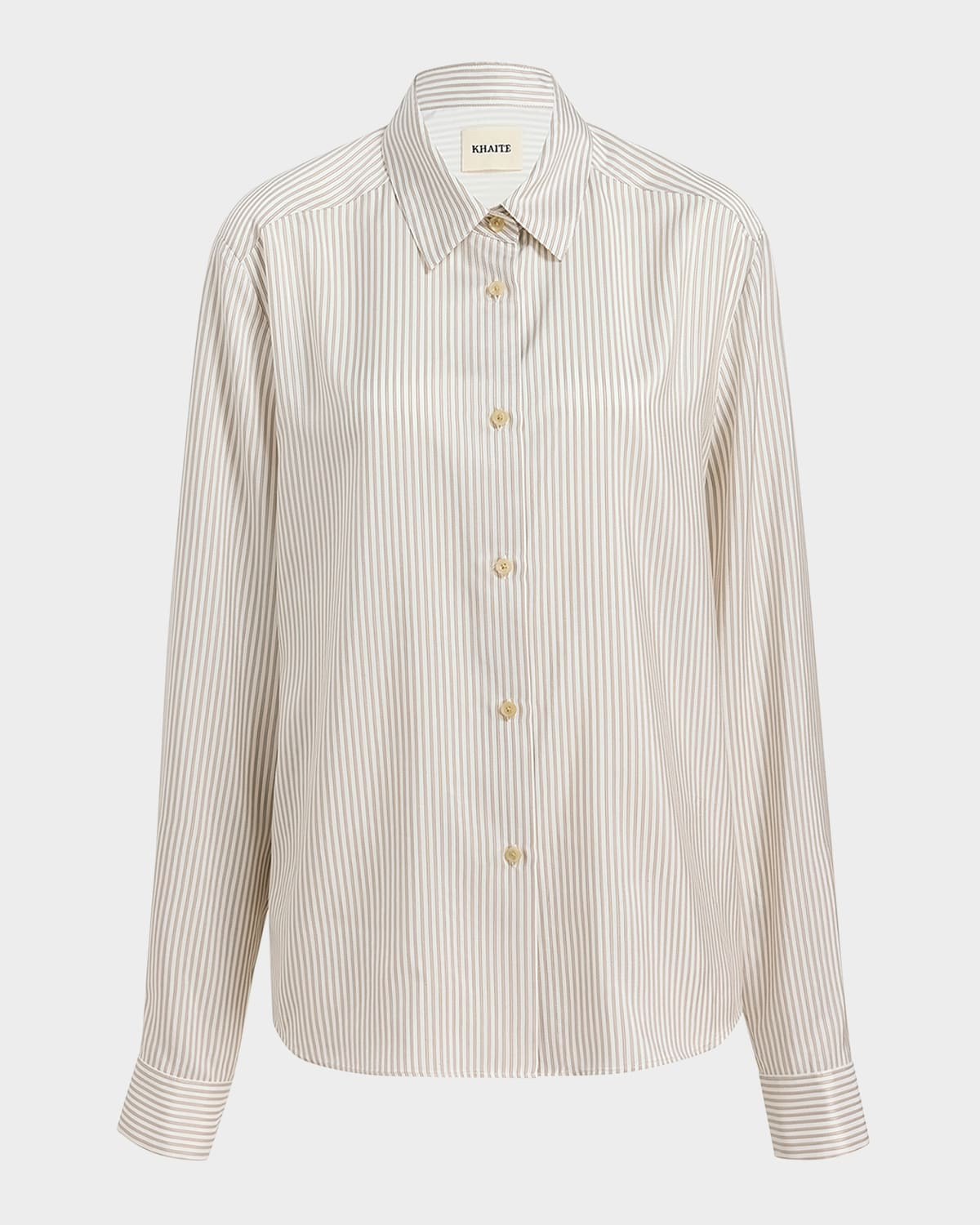 - Khaite "Argo" classic striped shirt in luxurious silk - Point collar - Long sleeves with button cuffs - Classic fit - Hem falls to the hip - Button-front - Silk - Made in USA