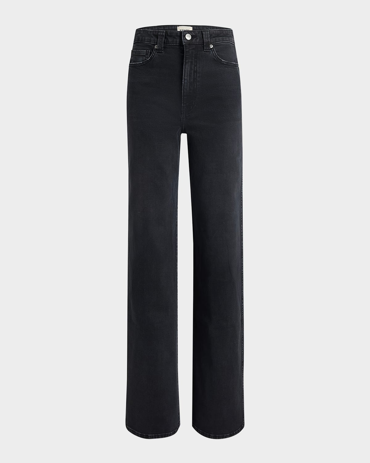 - Khaite "Dane" wide-leg jeans in black denim - High rise - Five-pocket style - Baggy fit - Full length - Button/zip fly; belt loops - Cotton/polyurethane - Made in USA