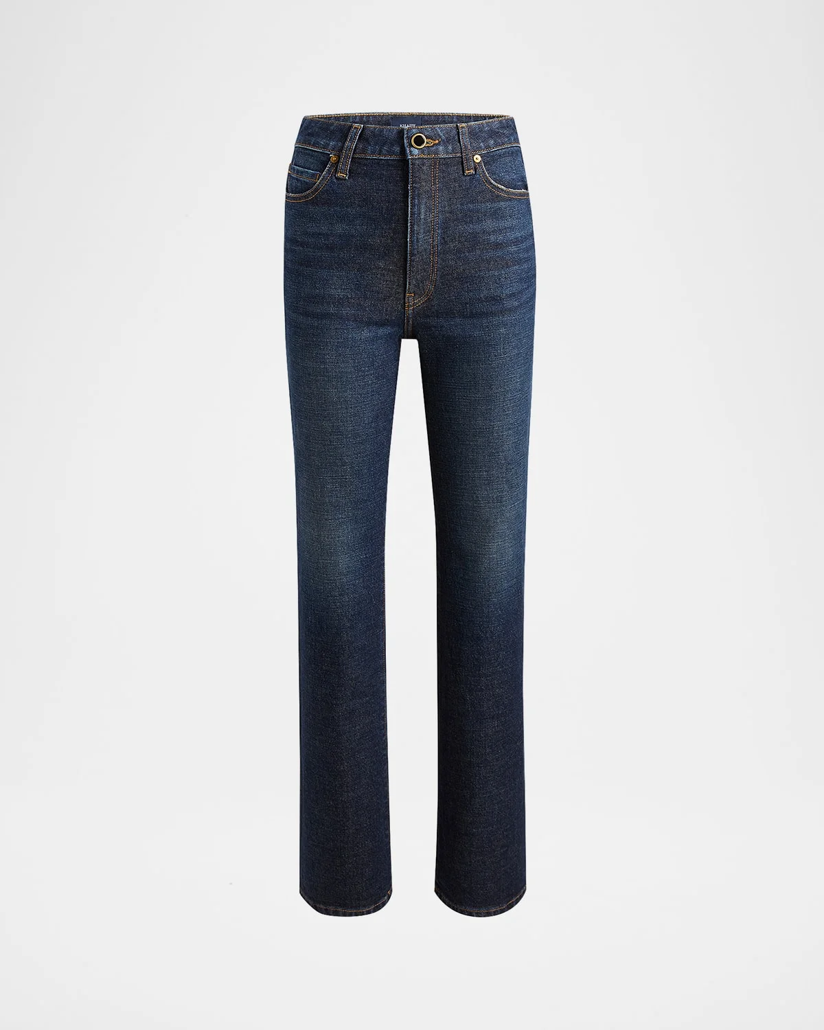 Khaite "Danielle" jeans High rise Fivepocket style Straight legs Full length Button/zip fly; belt loops Cotton/polyurethane Dry clean Made in USA