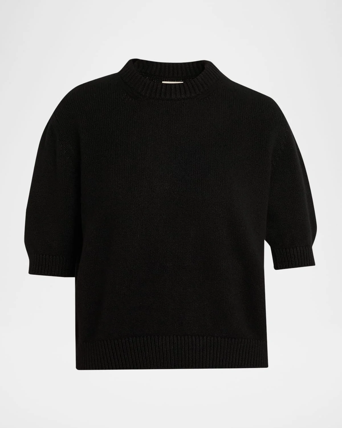 Khaite "Davin" knit sweater with ribbed trim Crew neckline Short sleeves Relaxed fit Pullover style Cashmere Dry clean Made in Italy