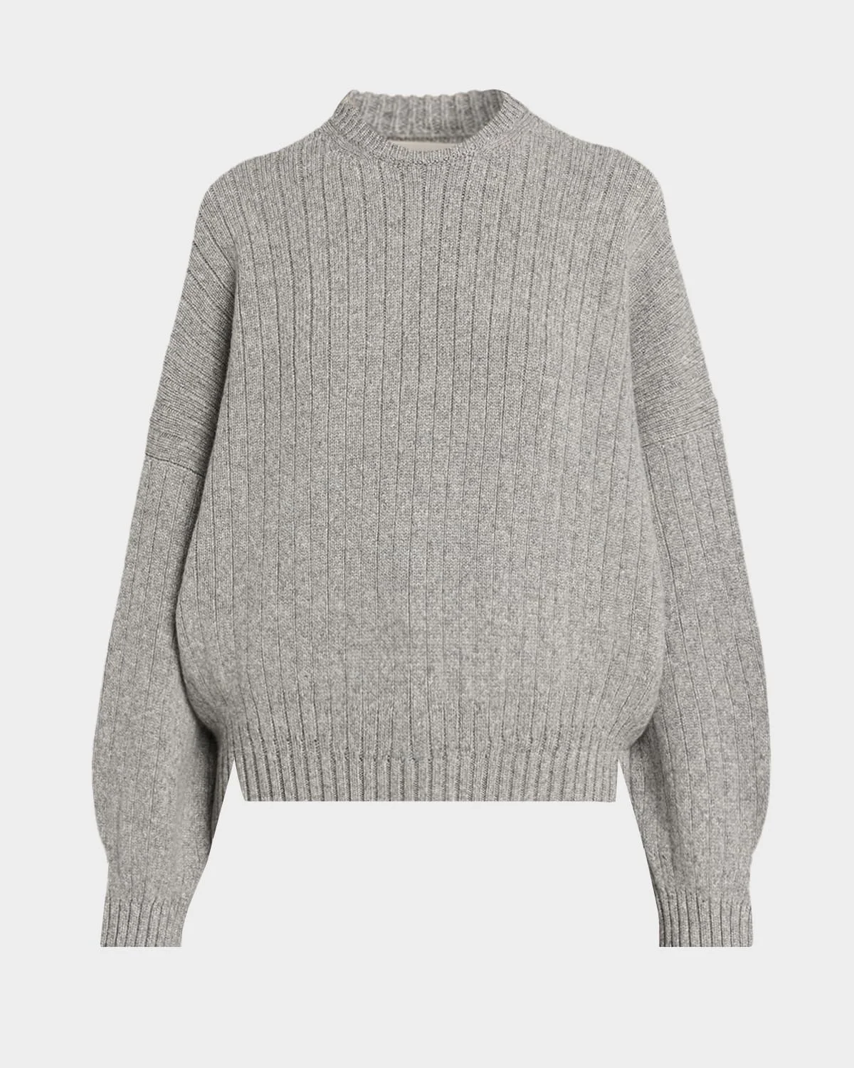 Khaite "Lennox" sweater is crafted of a soft cashmere wide ribbed knit Crew neckline Long sleeves Drop shoulders Loose fit Ribbed cuffs and hem Pullover style Cashmere Dry clean Made in Italy