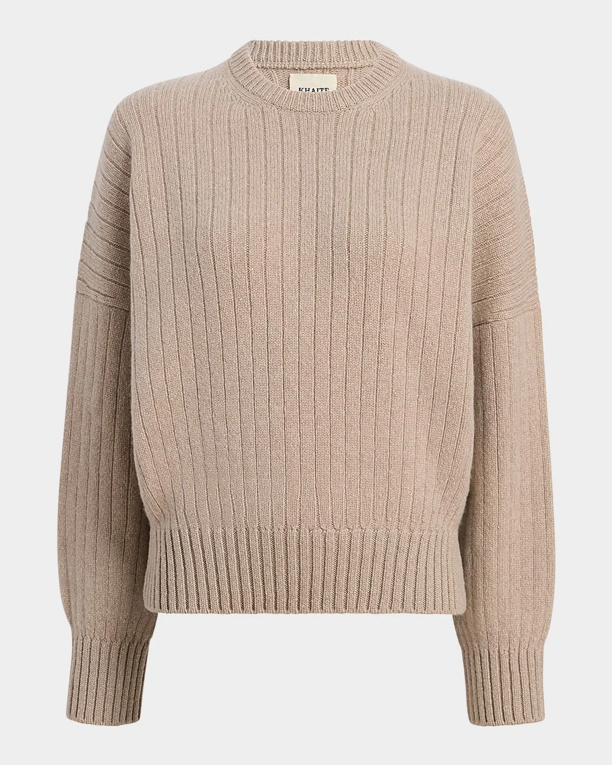 Khaite "Lennox" sweater is crafted of a soft cashmere wide ribbed knit Crew neckline Long sleeves Drop shoulders Loose fit Ribbed cuffs and hem Pullover style Cashmere Dry clean Made in Italy