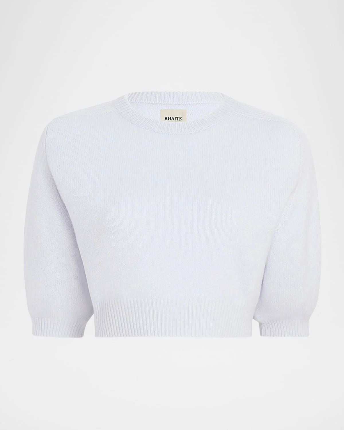 Crafted from a wool-cashmere blend, this "Lorelai" sweater from Khaite features a cropped silhouette and ribbed detailing on the shoulders Crew neckline Elbow sleeves Cropped style Relaxed fit Pullover style Wool/cashmere/elastane Dry clean Imported